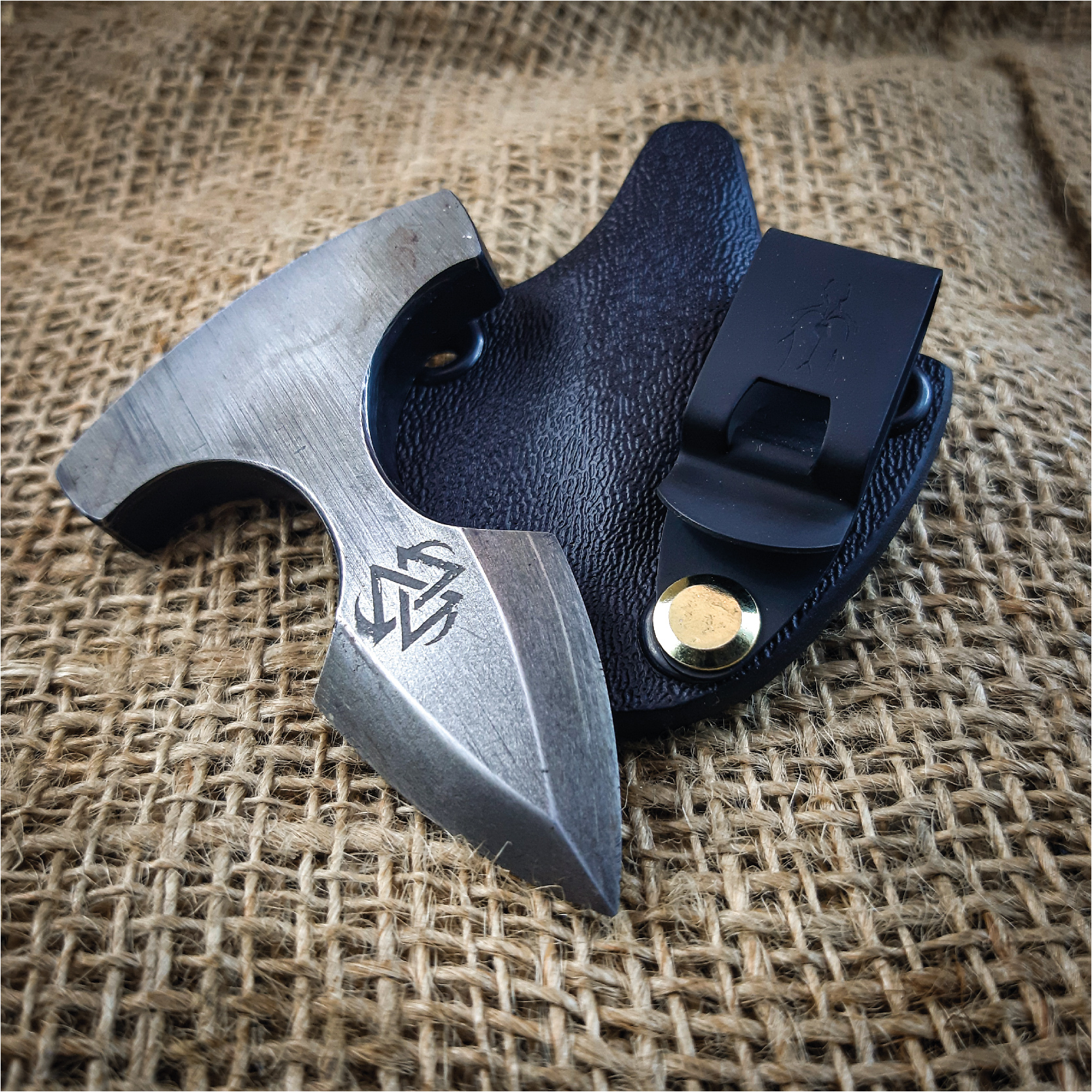 Diplomat is a massive and heavy push dagger that is more akin to a spearhead than a knife. Single piece of 10mm thick D2 steel tapered and beveled for a diamond crossection on the tip gives the Diplomat exceptional piercing power. It is a simple and effective tool that will never fail, because there is nothing that can fail in it.
