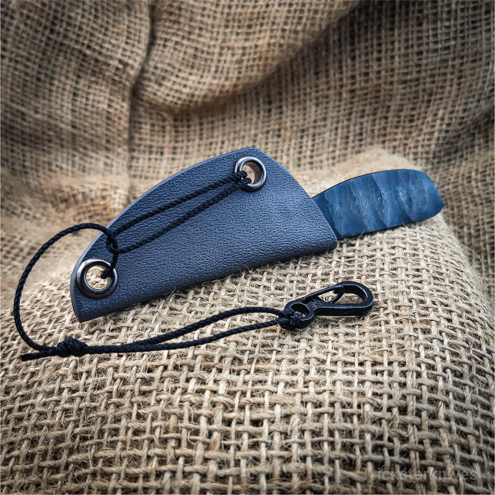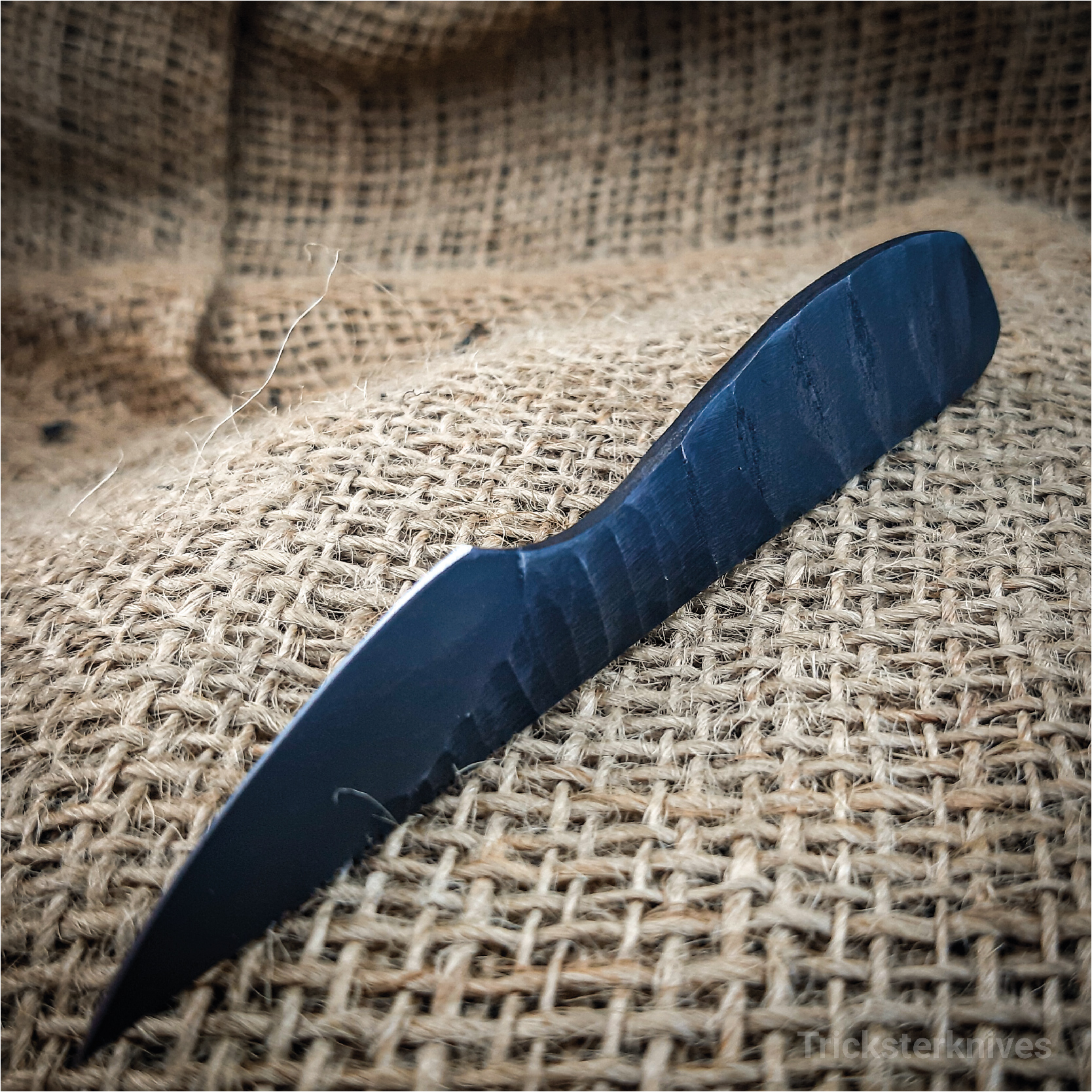 Wykonany z 2,5mm grubego kawałka stalki k720 nóż do codziennego noszenia. Dla pewnego chwytu stal rękojeści jest pokryta teksturą, a na "kręgosłupie" noża wykonano jimping.